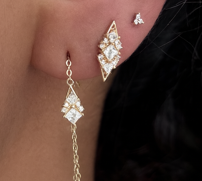 עגיל זהב צמוד ראשל עשוי 14 קראט מלא.
