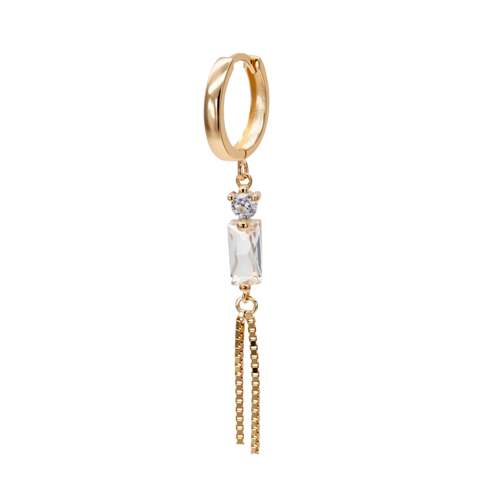 העגיל משובץ באבן באגט ומשובצת בזירקונים קטנים לבנים ברמה של 5A ( רמה גבוהה)