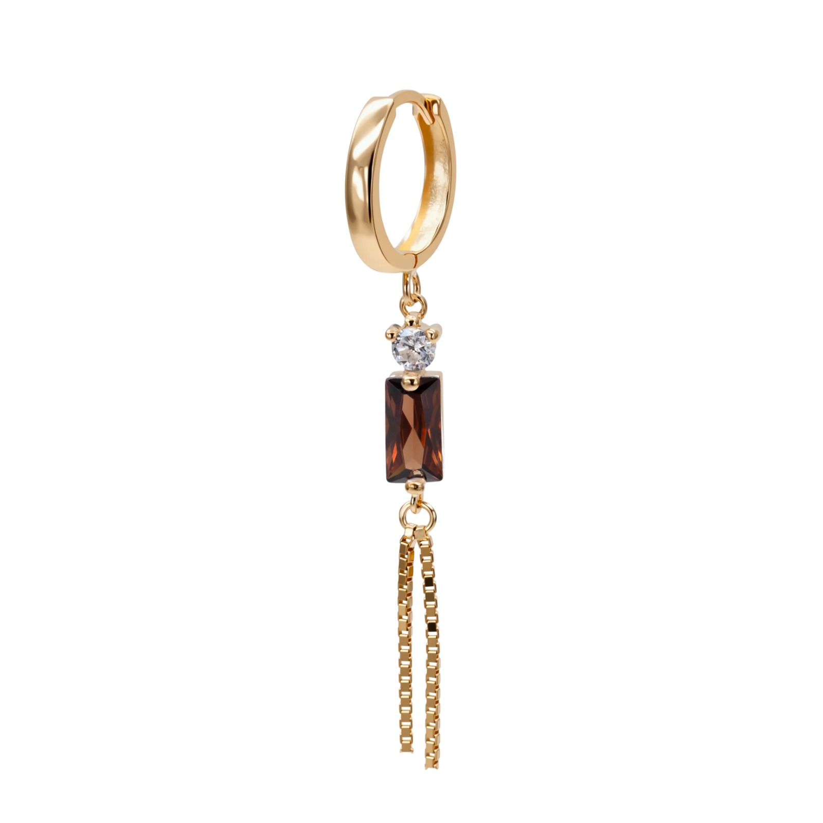 העגיל משובץ באבן באגט סמוקי קווארץ ומשובצת בזירקונים קטנים לבנים ברמה של 5A ( רמה גבוהה)