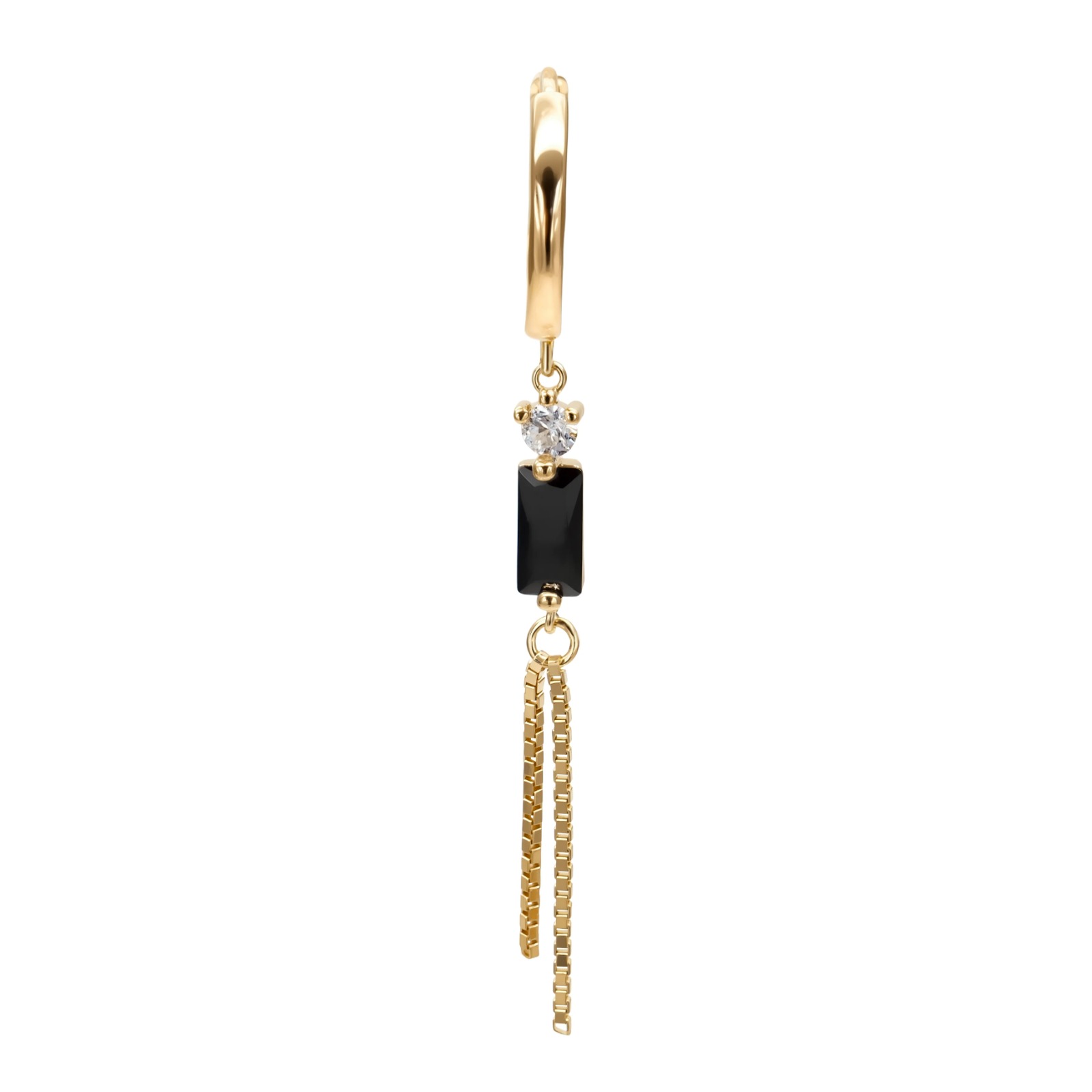 דף הבית » חנות » תכשיטי זהב 14 קראט מלא » עגיל חישוק באגט שחור – זהב 14 קראט מלא