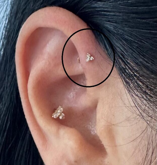 עגיל פירסינג טריו ,מהמם כעגיל אלכסוני, טראגוס, הליקס קידמי , הליקס, פלאט ותנוך