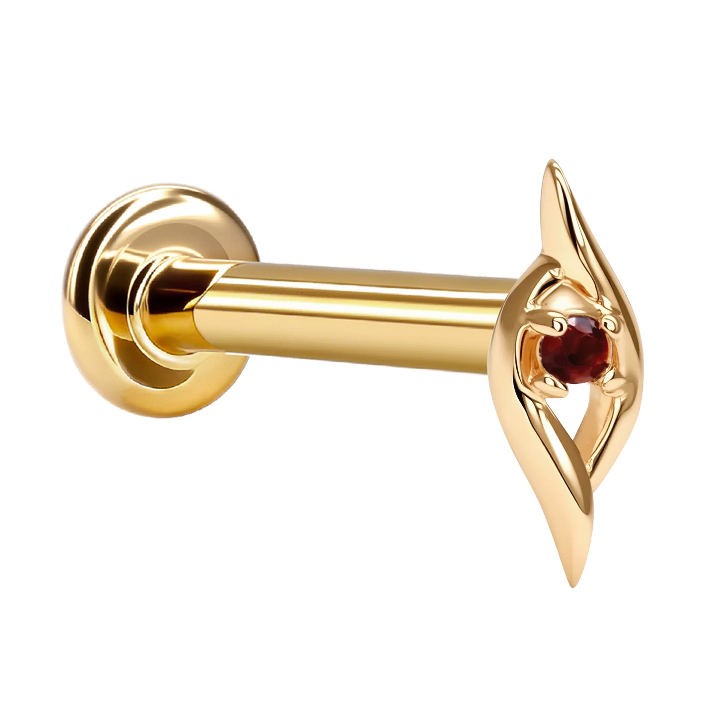 עגיל פירסינג ריו משובץ רובי – זהב 14 קראט – מוט הברגה